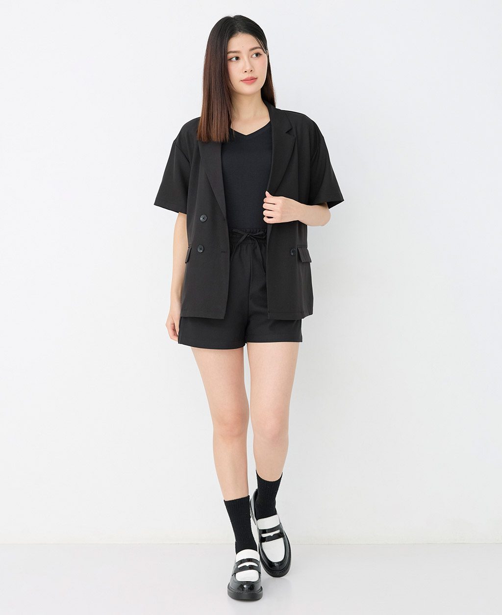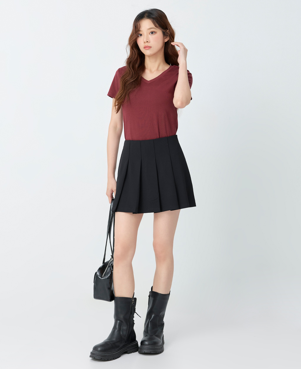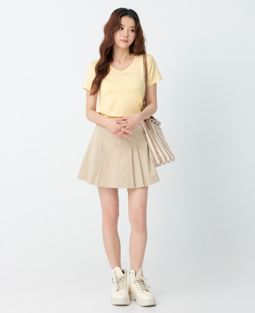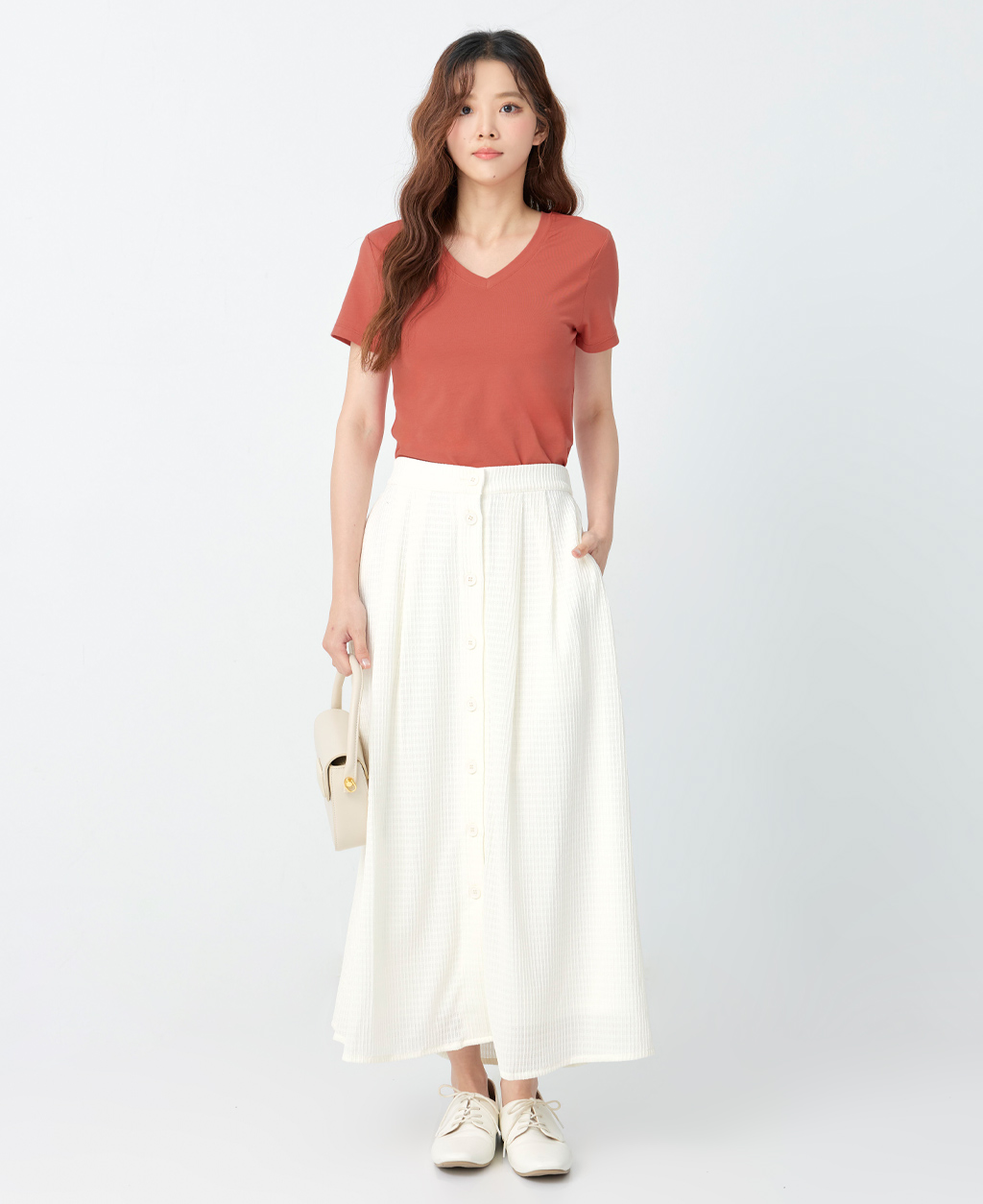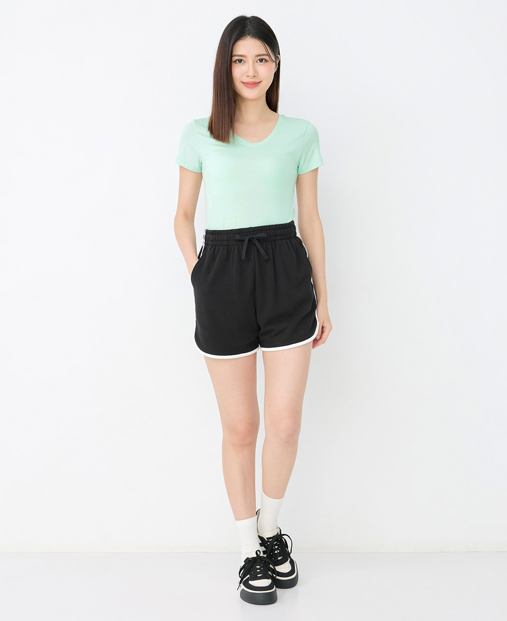 素面棉彈V領T恤