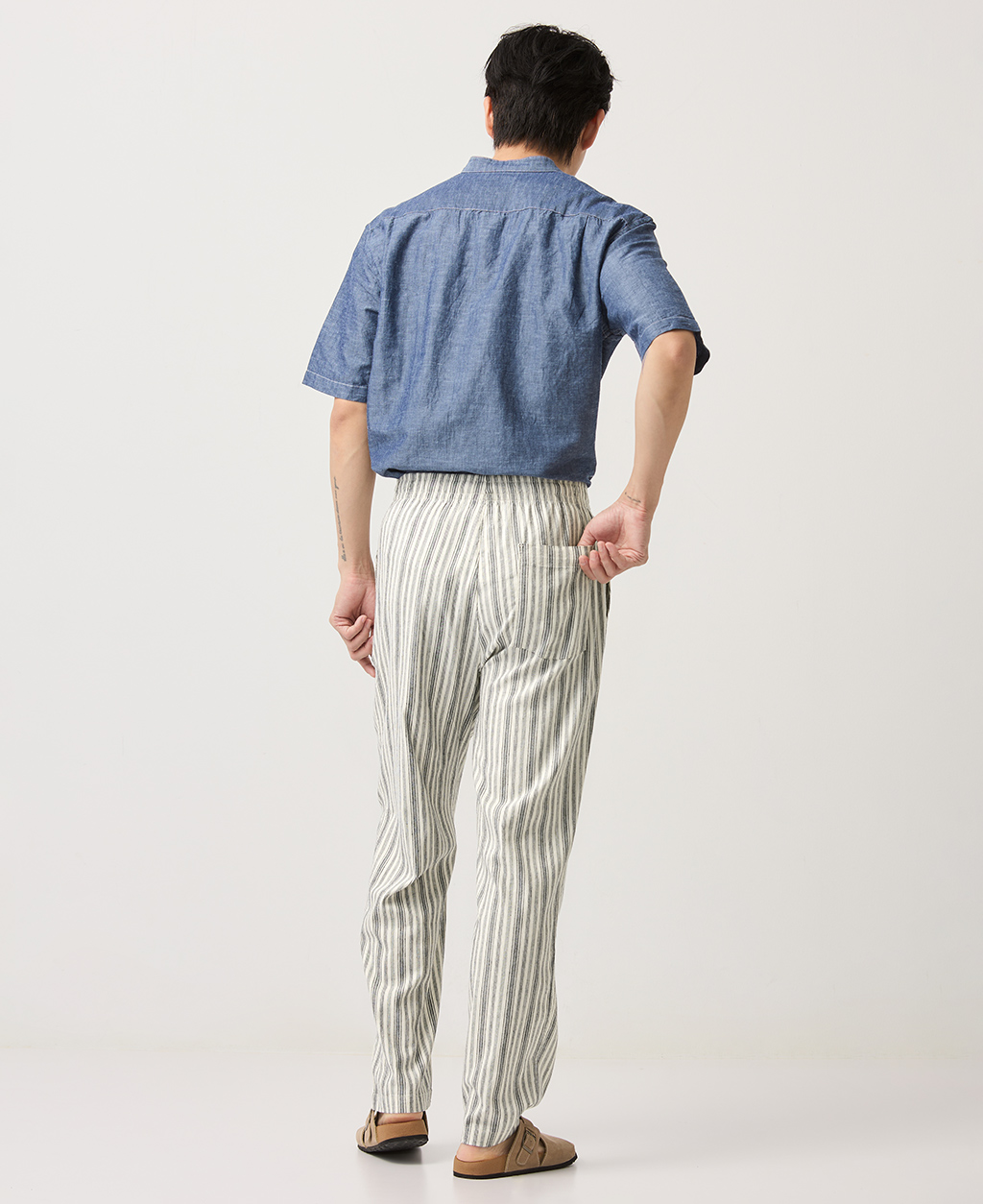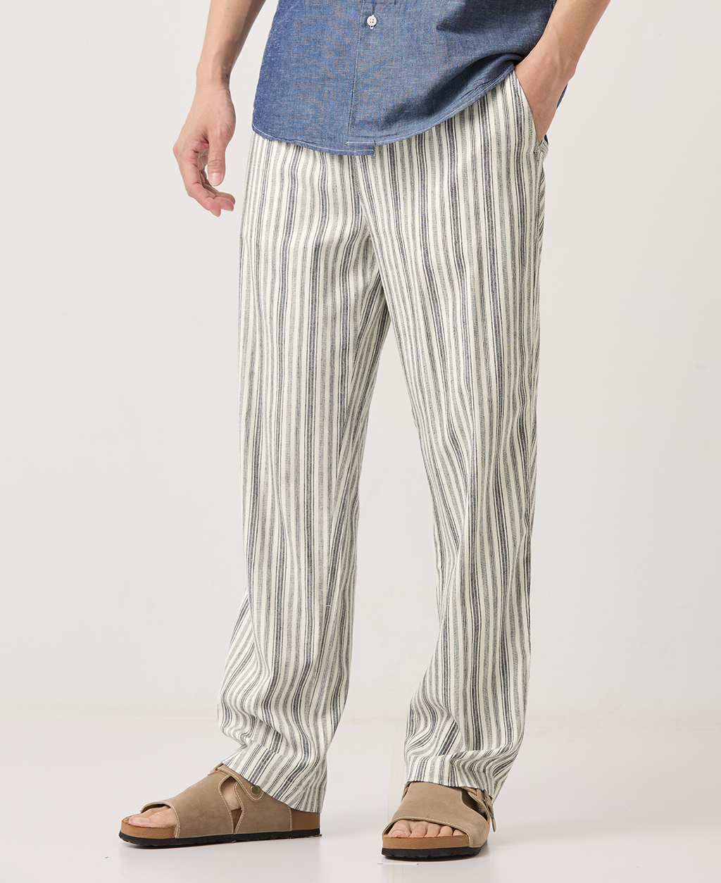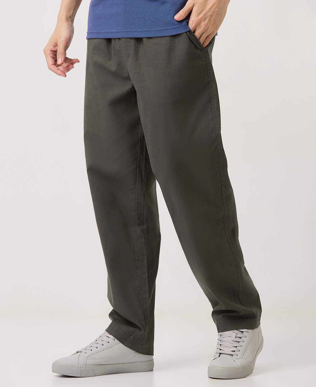 Regular Fit全鬆緊棉麻長褲