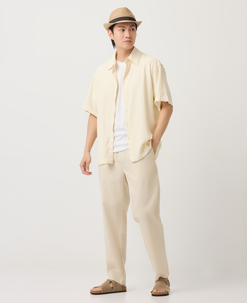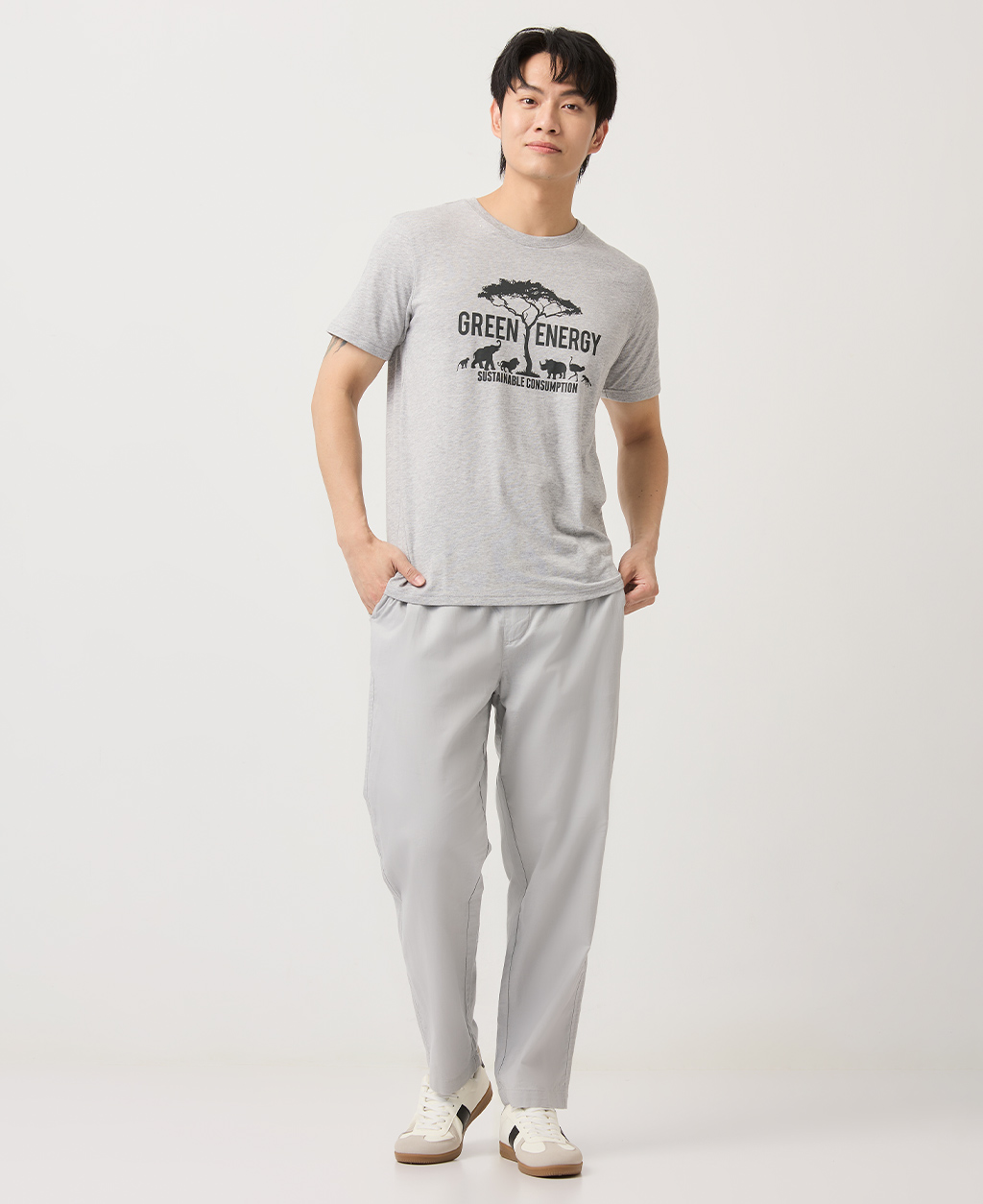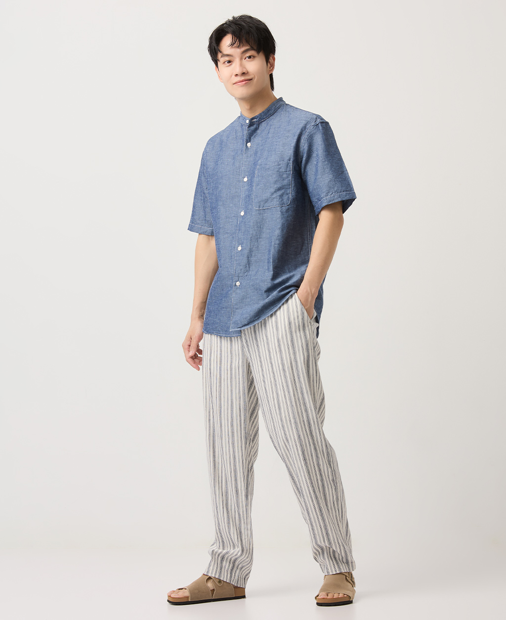 Regular Fit全鬆緊棉麻長褲