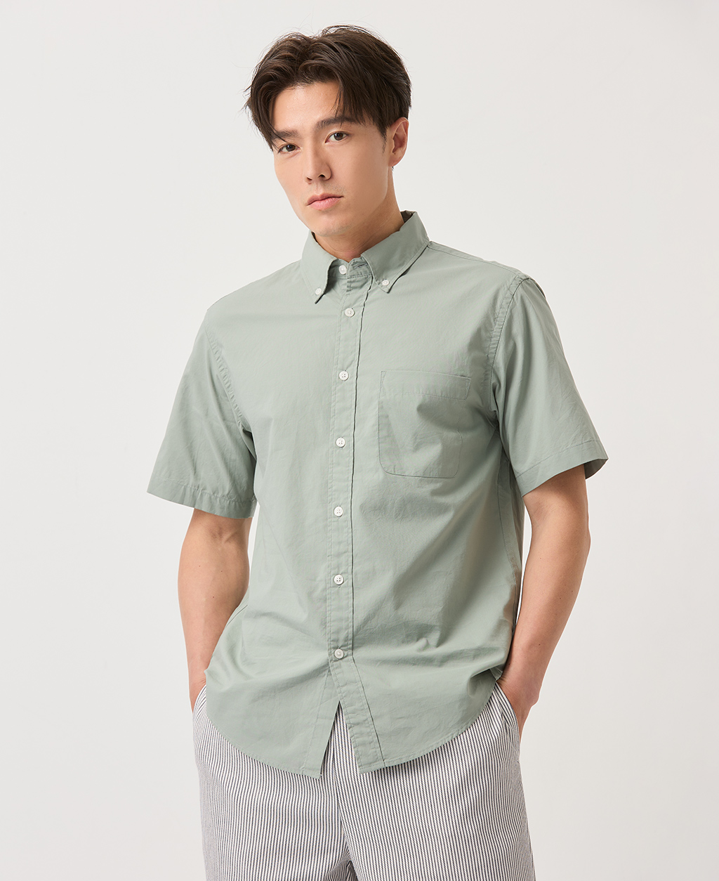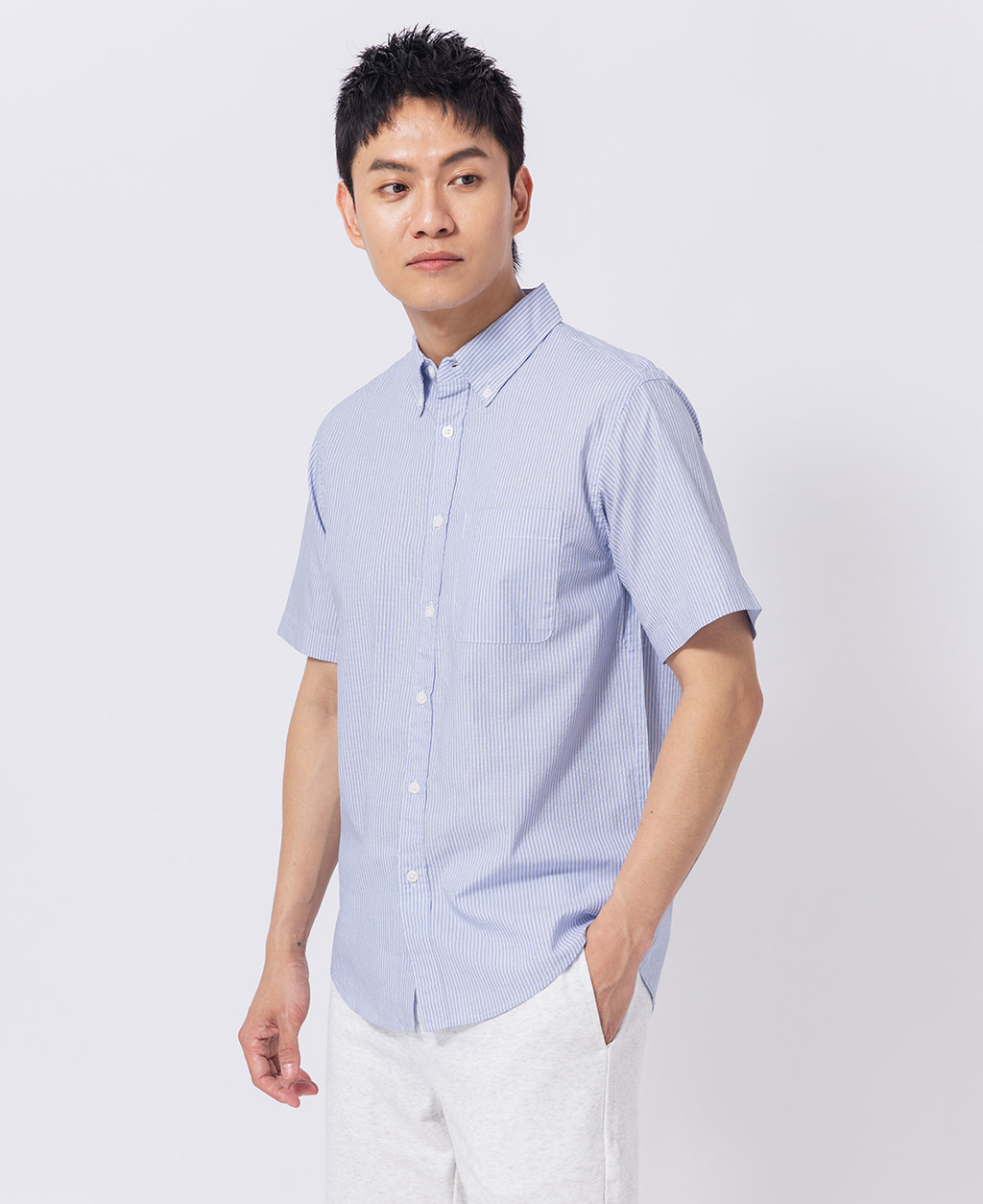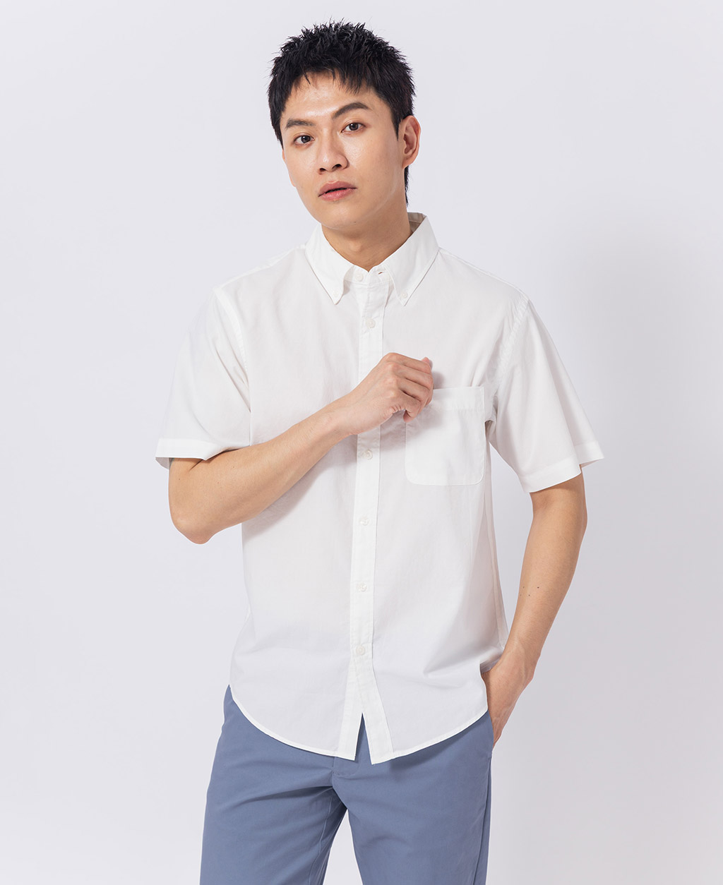 釘釦領左胸口袋襯衫
