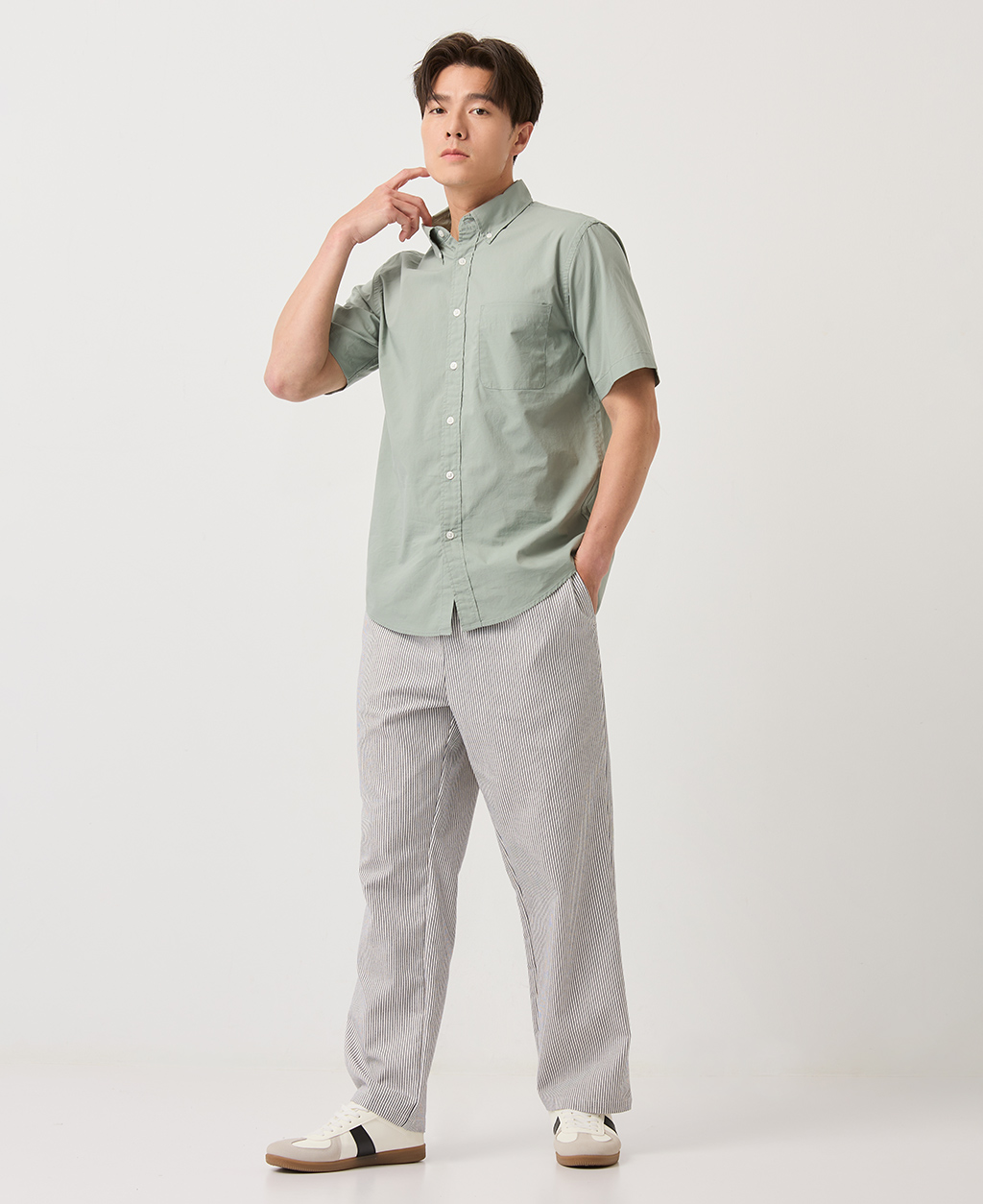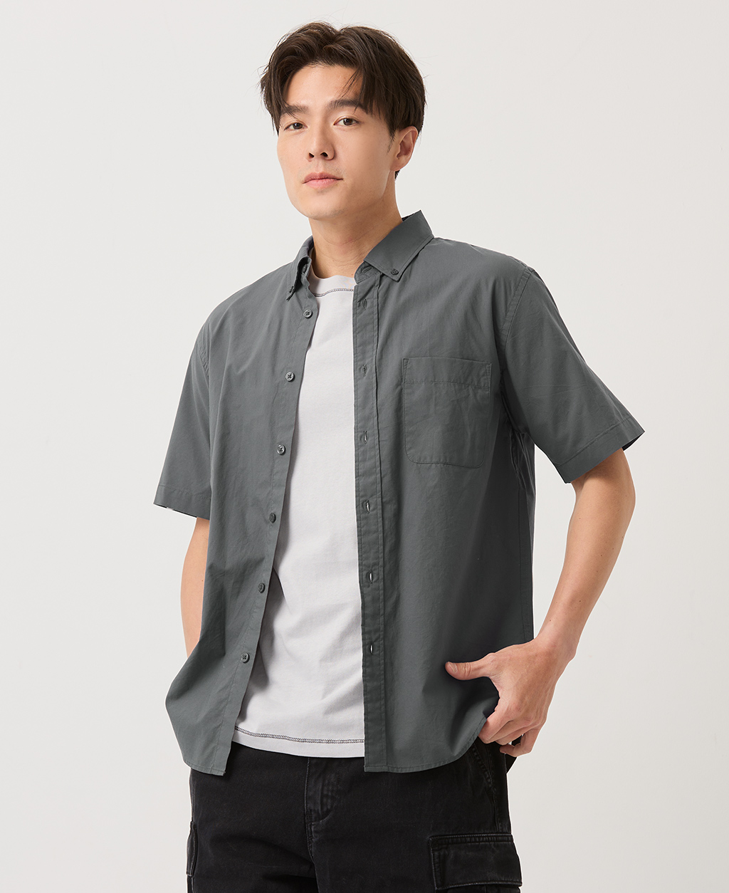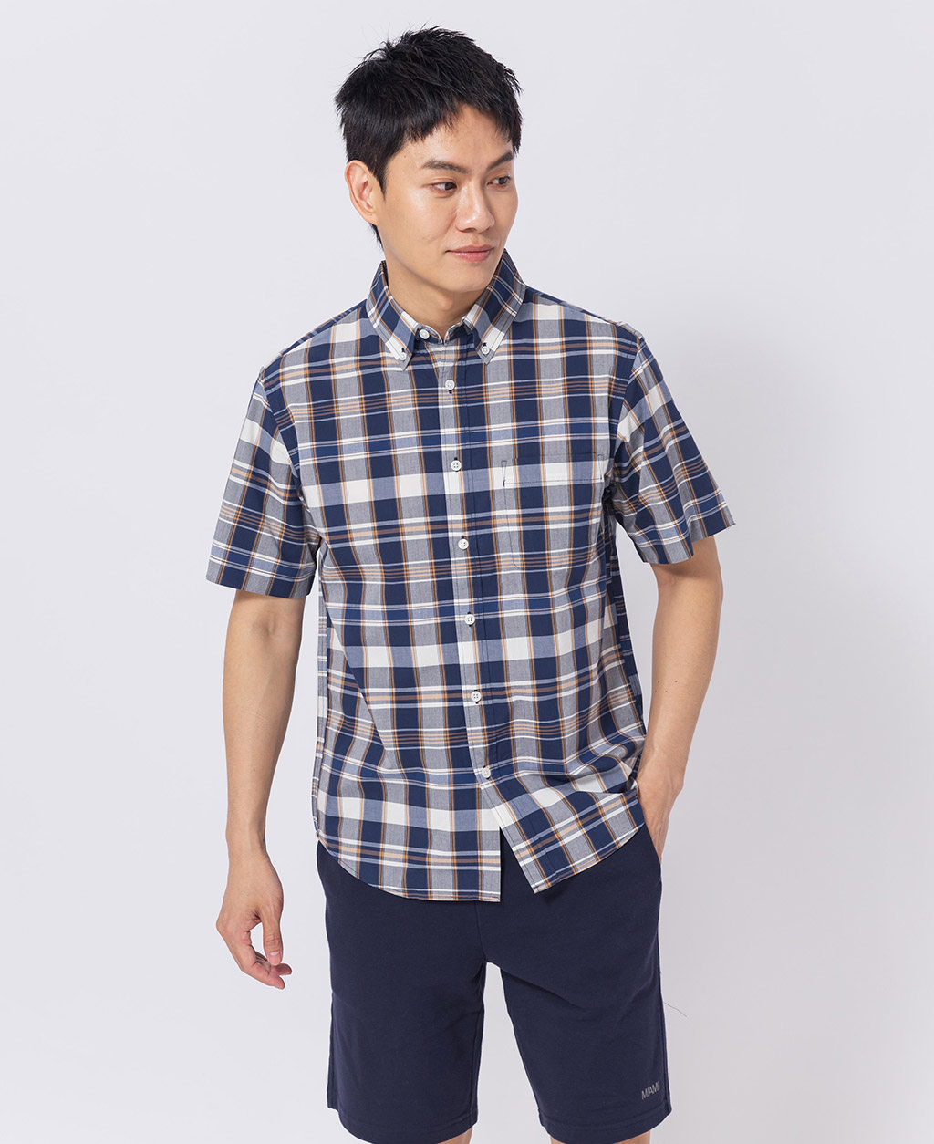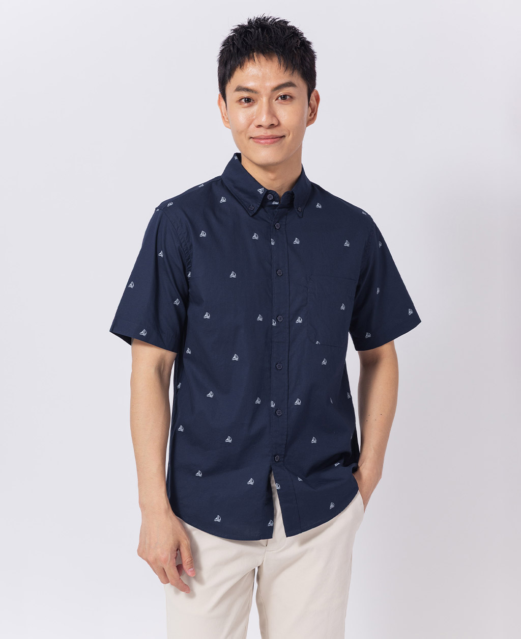 釘釦領左胸口袋襯衫
