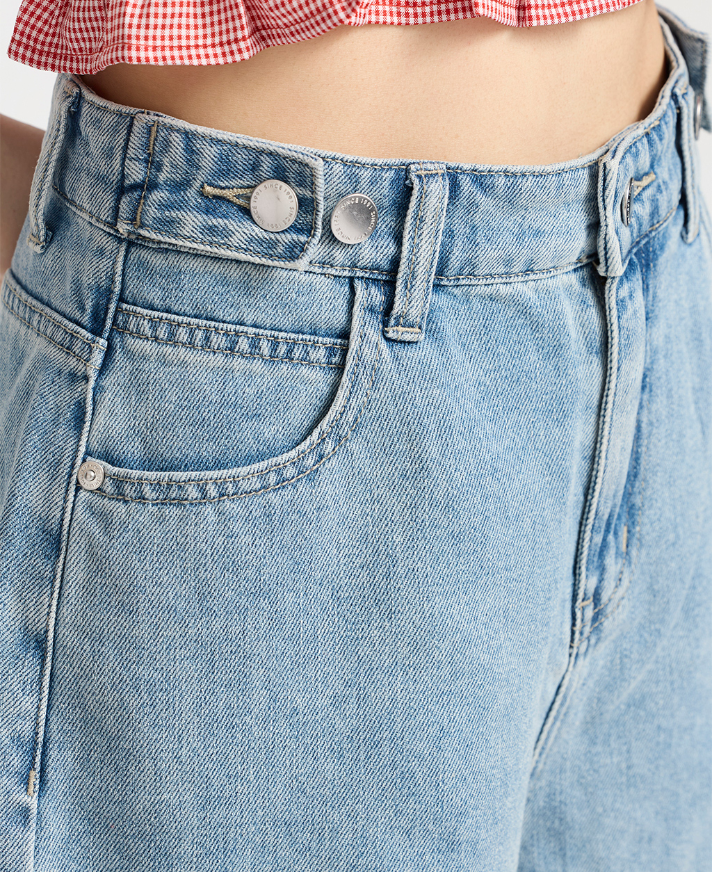 2.避免坐靠在淺色特別是潮濕的物體上,會有掉色可能。並小心與淺色衣物搭配,汗漬有可能導致未經洗水的牛仔商品褪色。