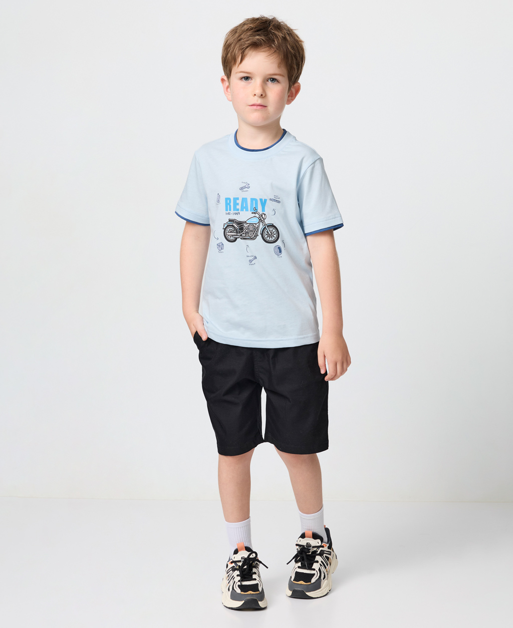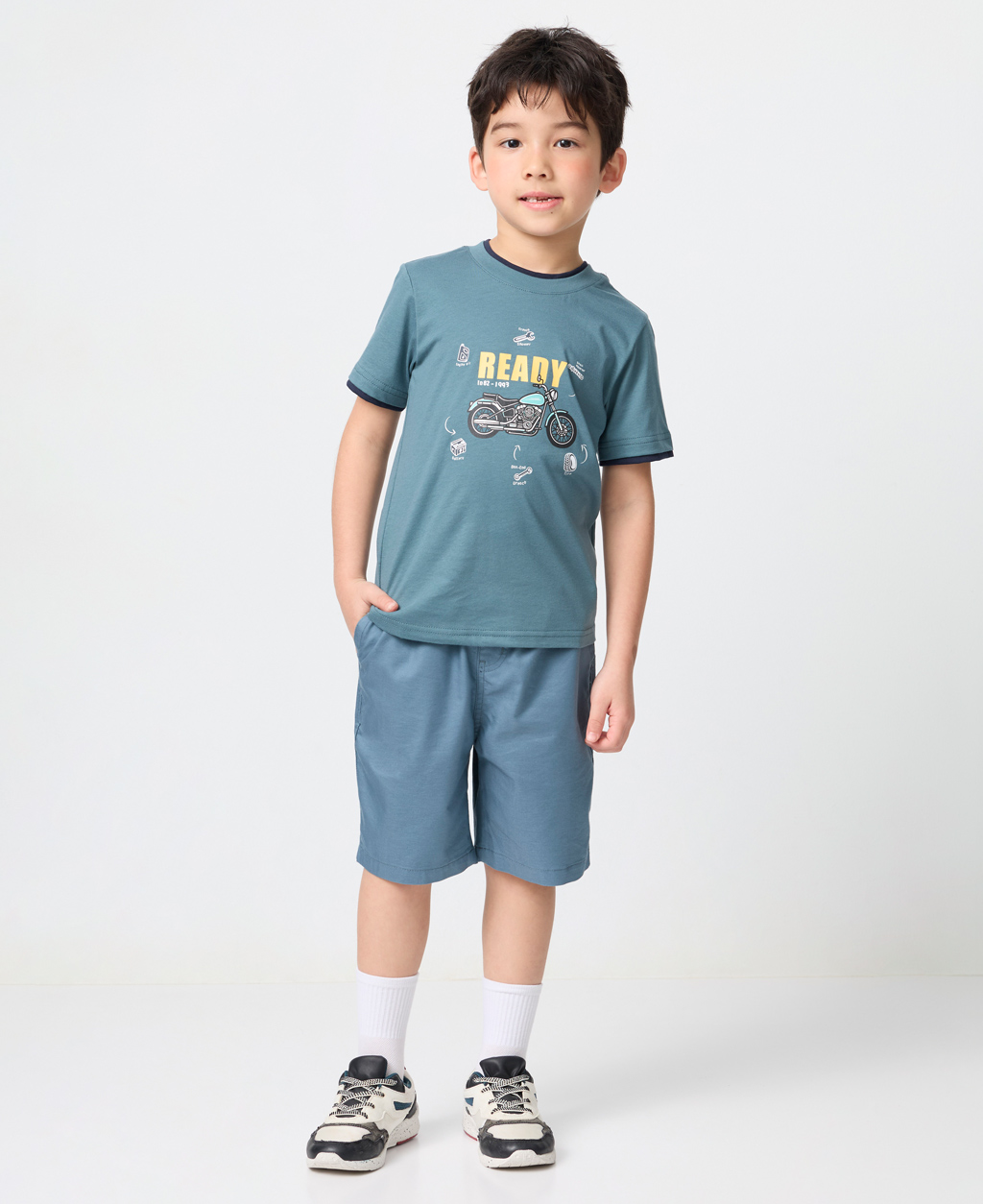 童機車印花雙層領短T