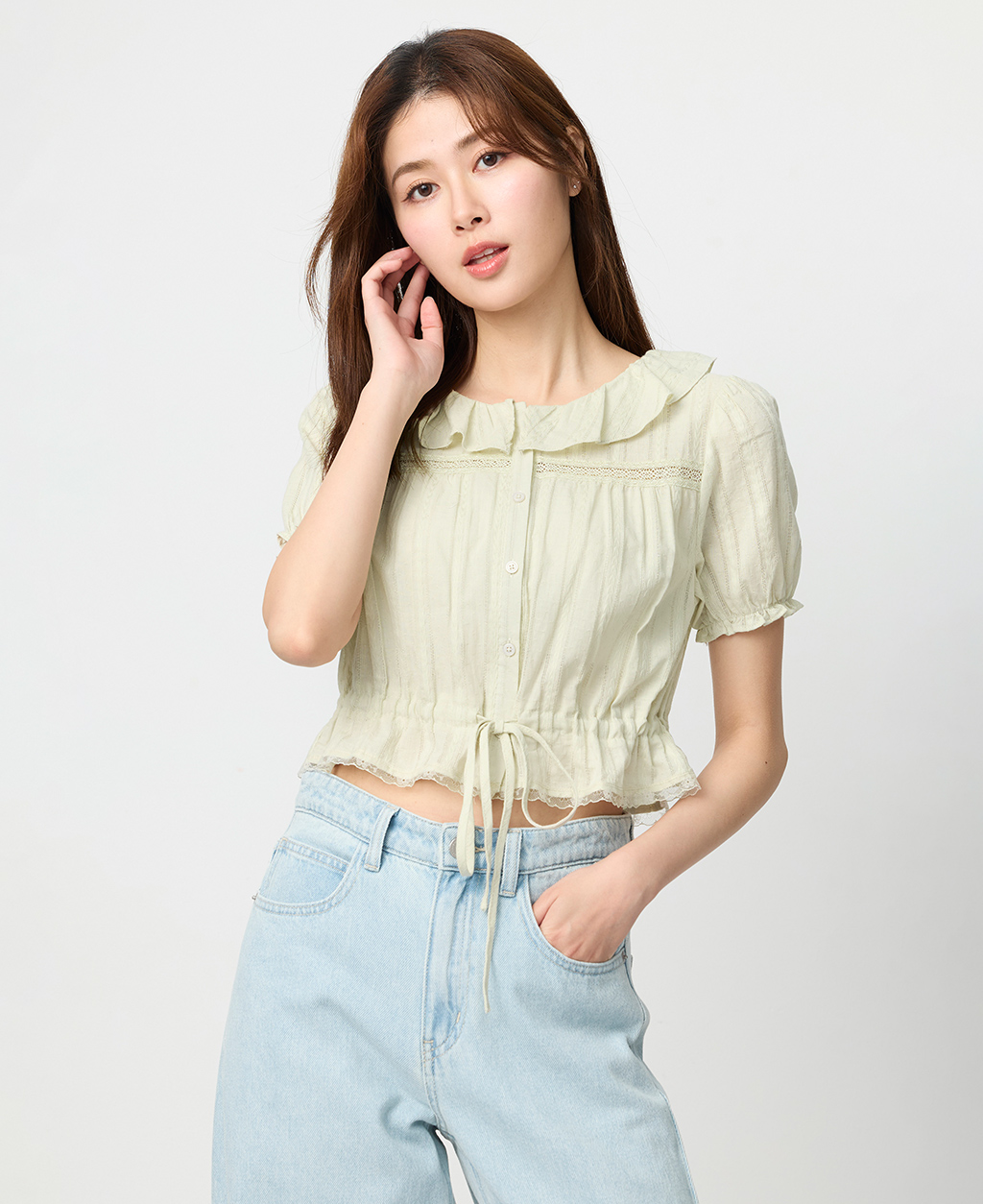 1.此布料因編織特性,如被指甲或突起物、飾物及包包上的金屬裝飾等勾拉,可能會產生抽紗破洞的現象,穿著和保管時請注意。