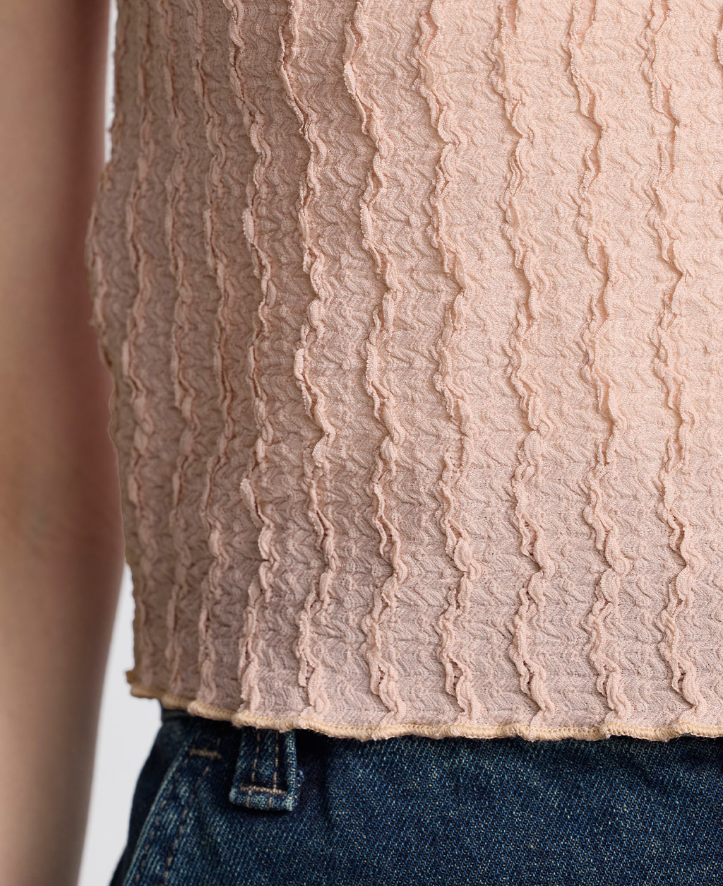 1.此布料因編織特性,如被指甲或突起物、飾物及包包上的金屬裝飾等勾拉,可能會產生抽紗破洞的現象,穿著和保管時請注意。