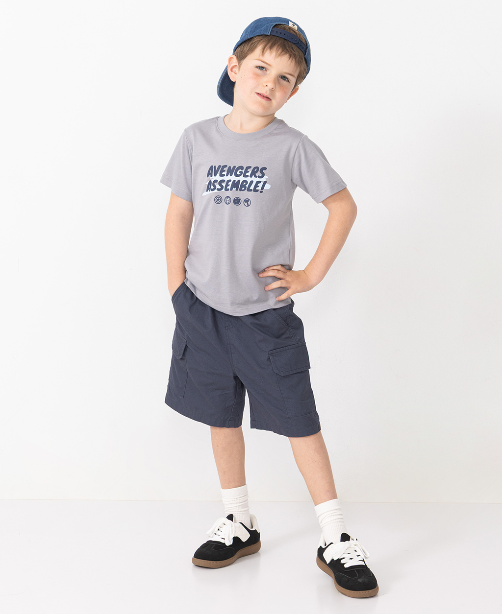 童漫威文字印花圓領短T