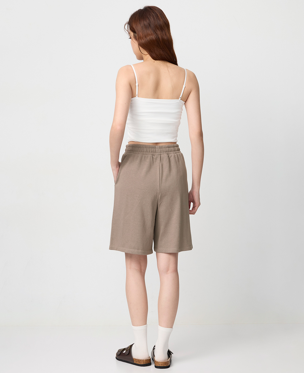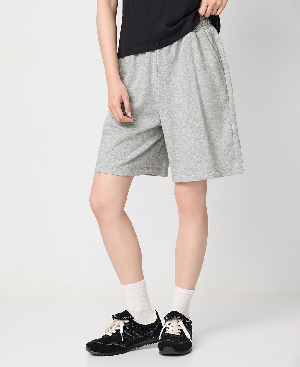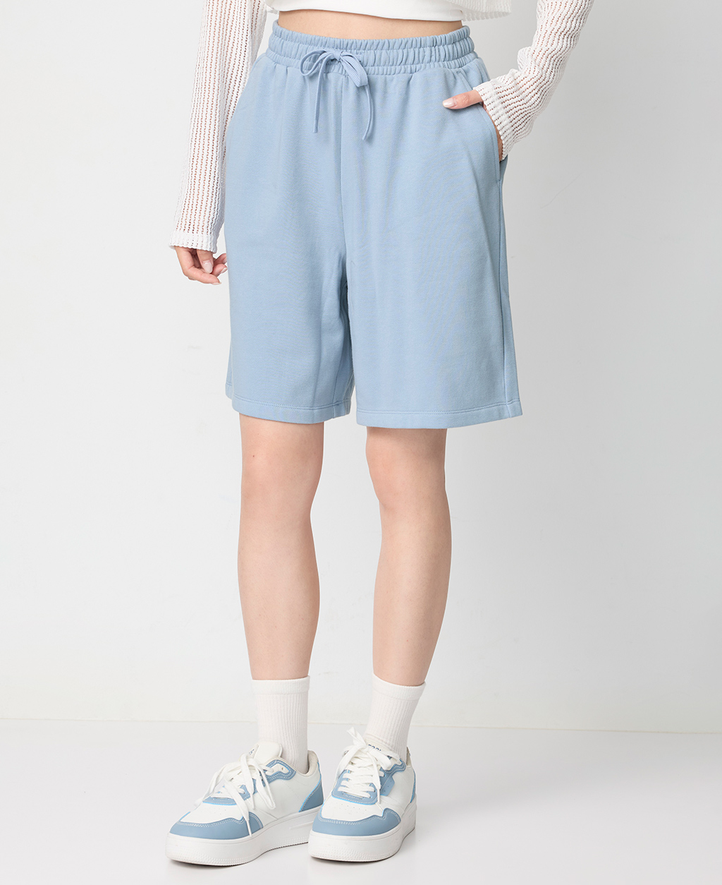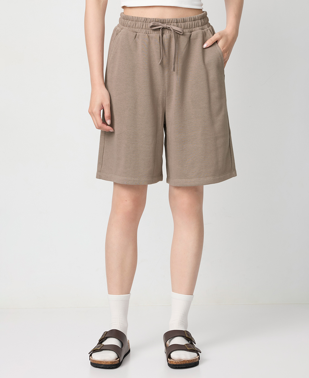 鬆緊抽繩平口中長褲