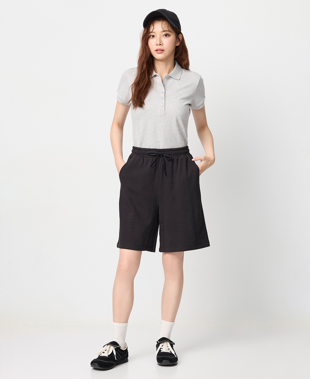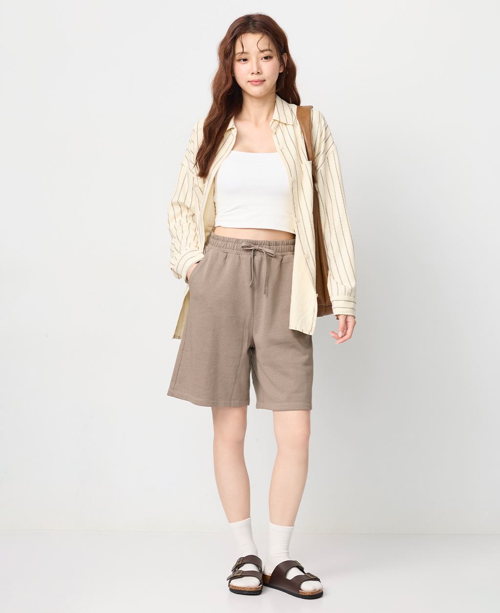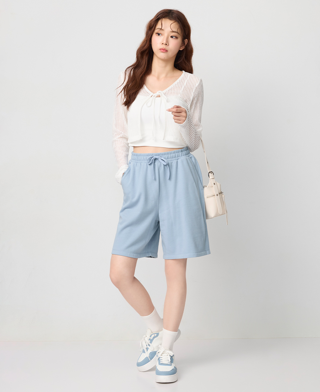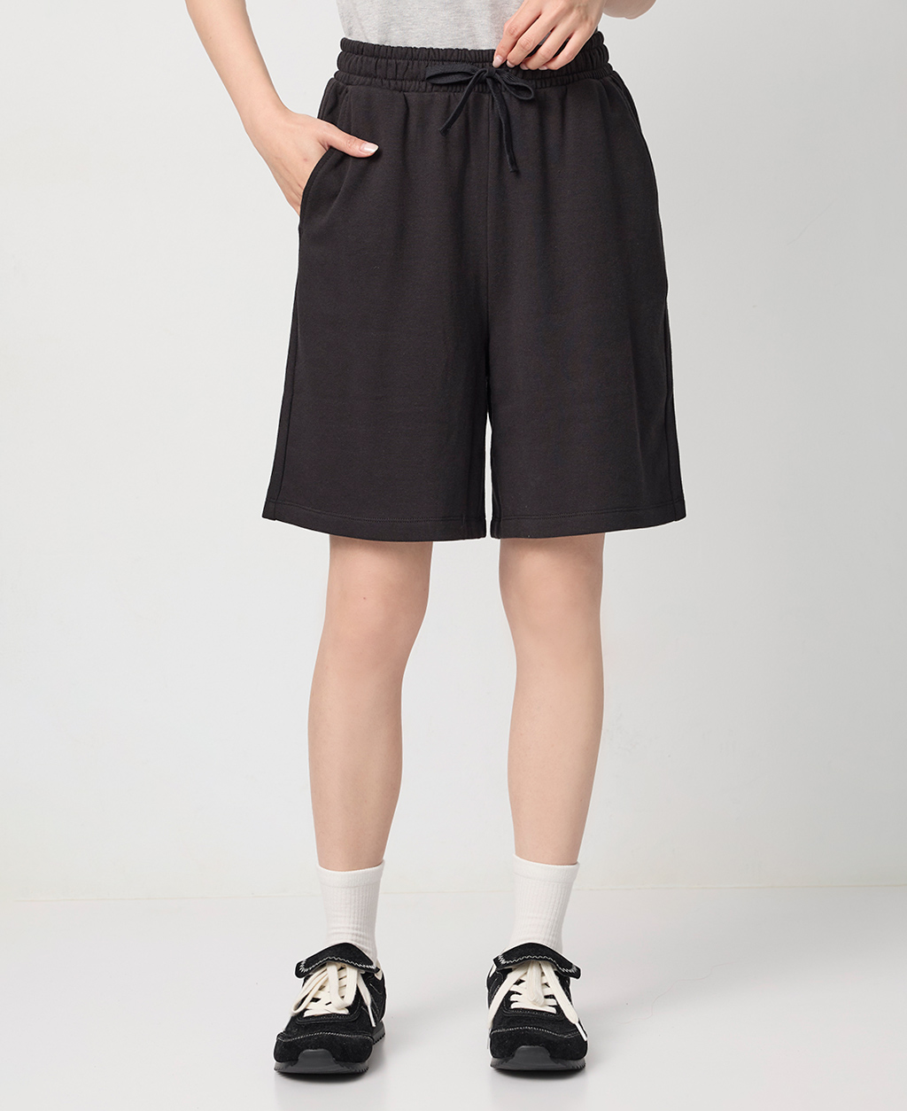 鬆緊抽繩平口中長褲