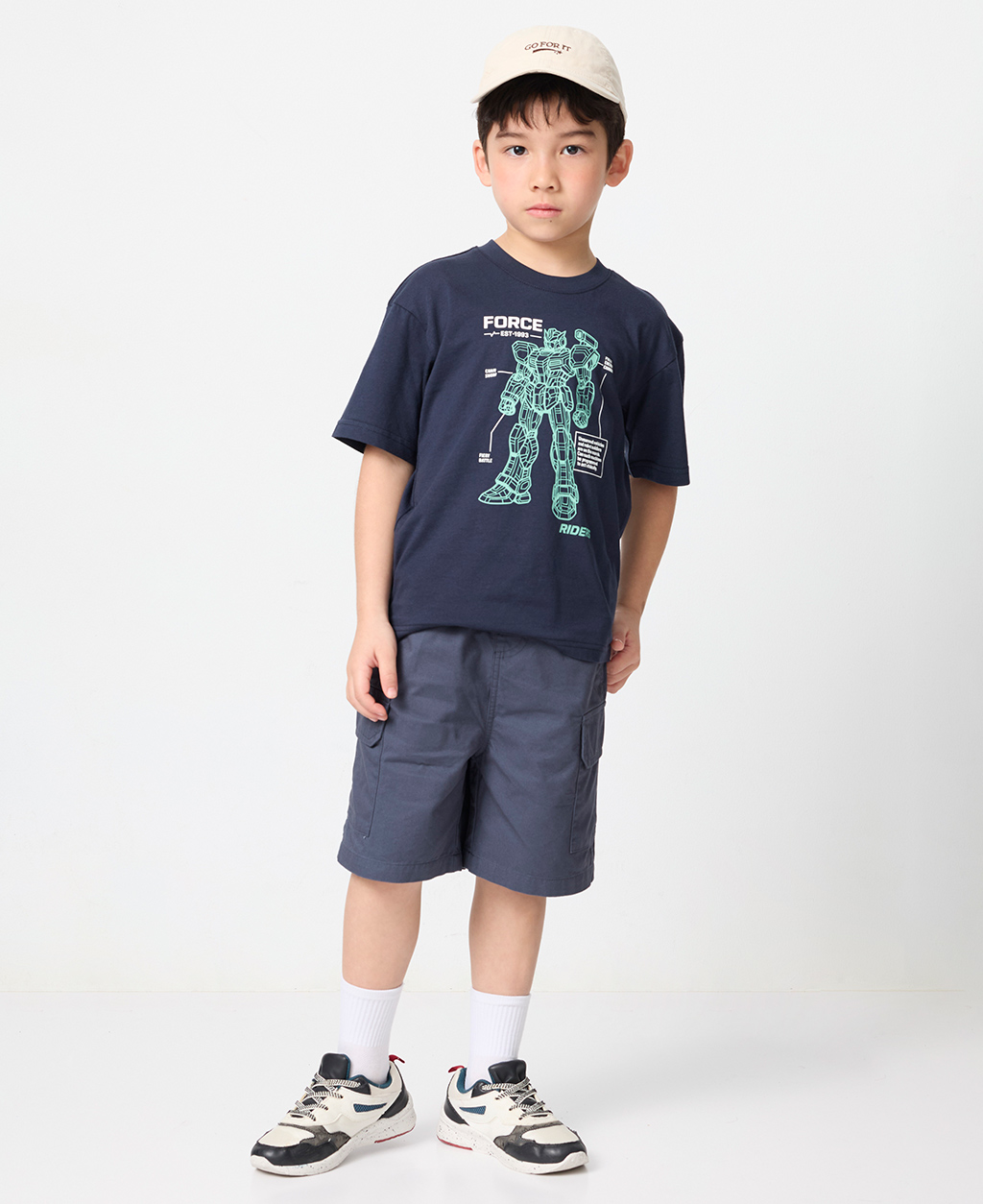 童線條機器人落肩短T