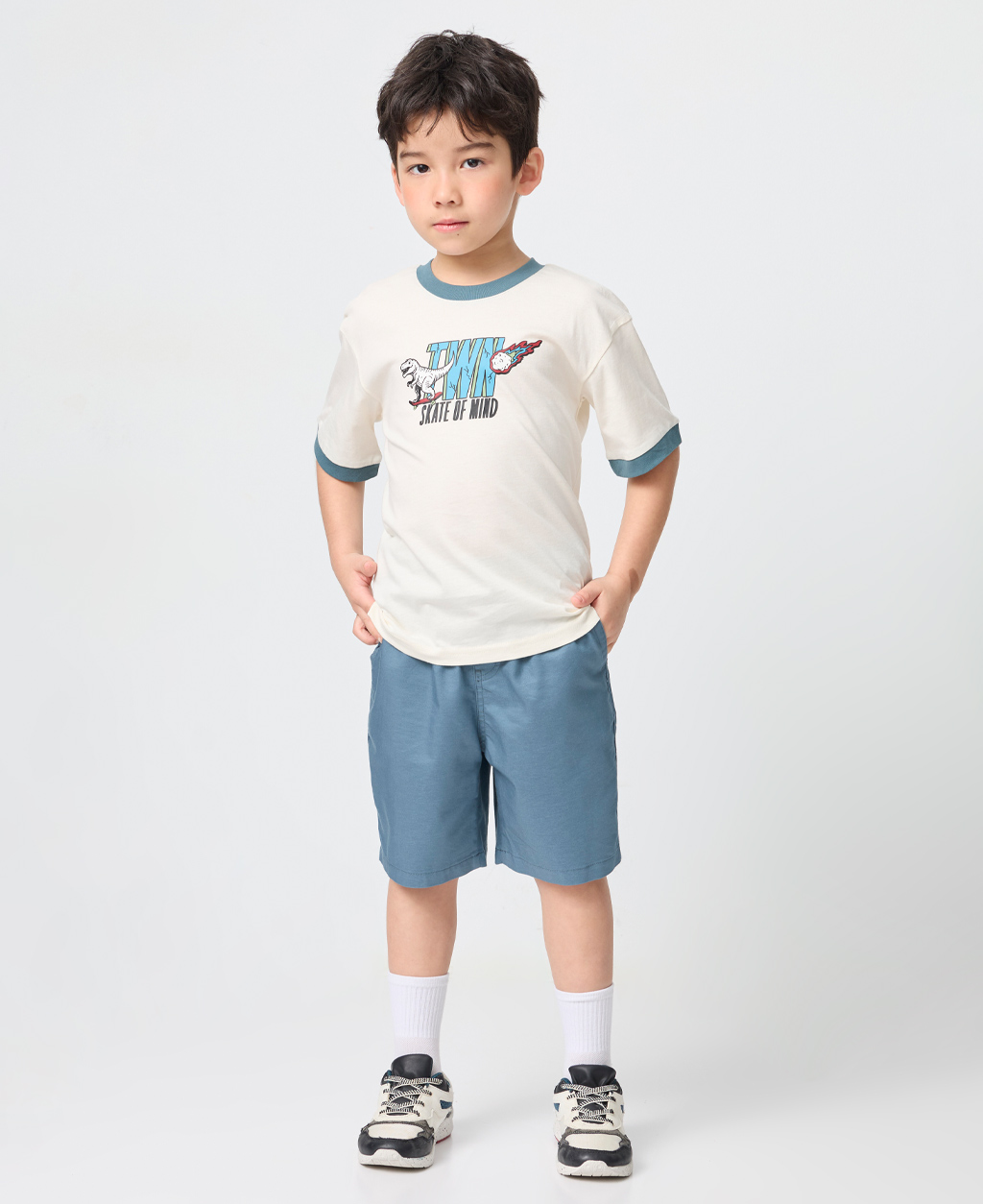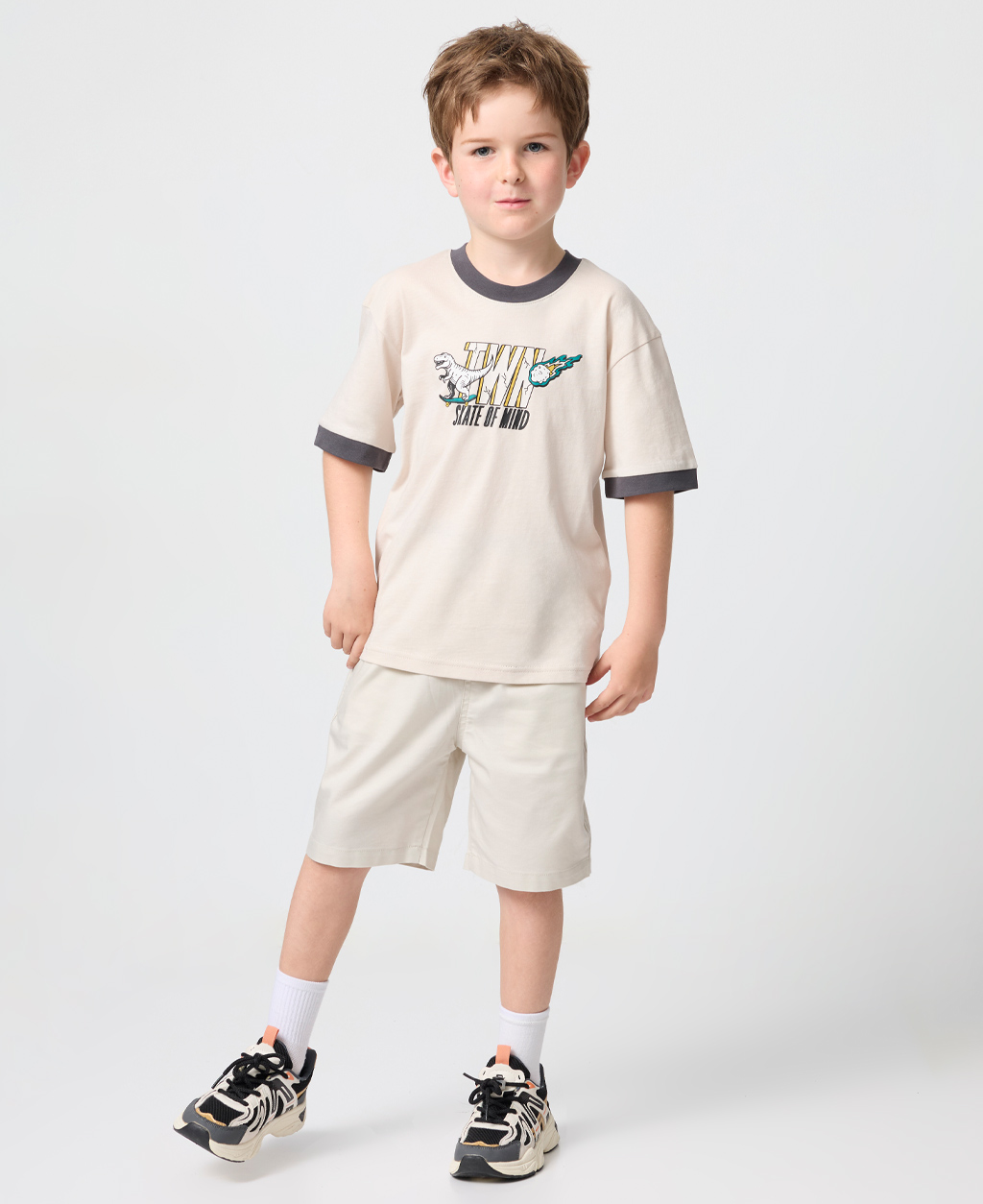 童恐龍文字落肩T恤