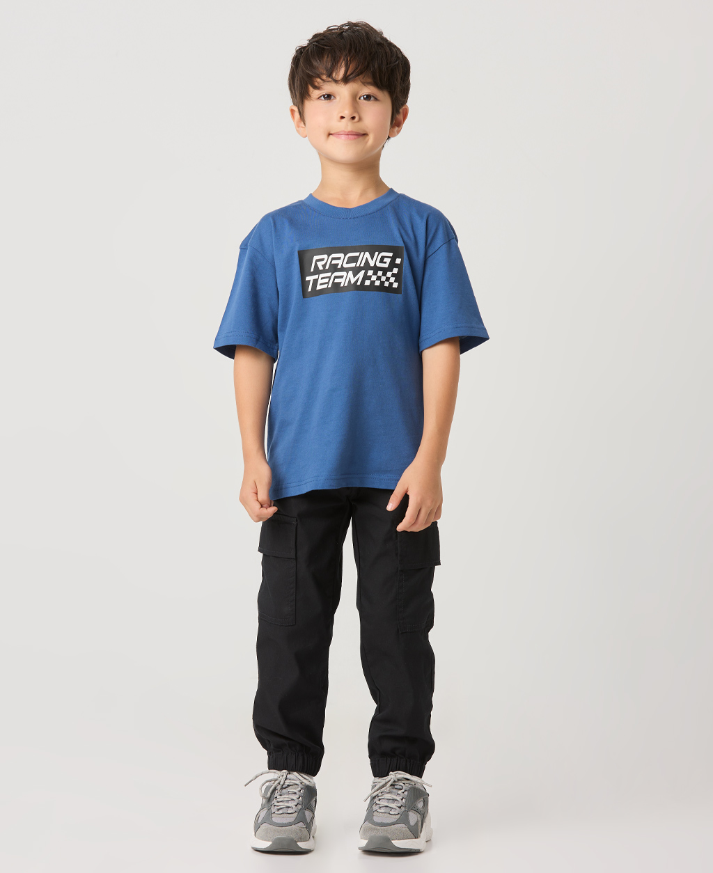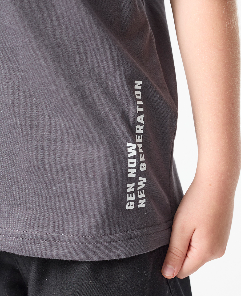童印字落肩短T